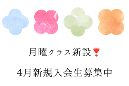 2026年4月より月曜日クラスを新設します。 それに伴い、新規入会生を募集いたします。 小学生クラスはしばらく満席が続いておりまし...